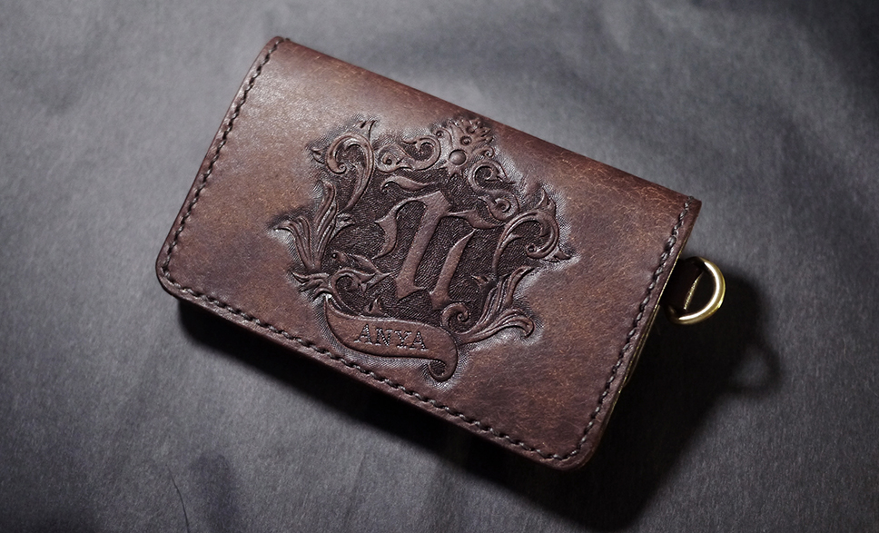 - 此款你可自行提供圖騰類花卉圖案,做為此皮件皮雕。